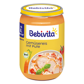 Нашите менюта Bebivita са специално пригодени да отговорят на нуждите на Вашето малко слънчице и благодарение на апетитните си вкусове те придават разнообразие в храненето. След 4-ти месец можете да предлагате на бебето си различните менюта Bebivita, като Зеленчуци с пиле и ориз като първи вкус на месо за бебето. Менютата, разбира се, са фино пюрирани и имат подходящ за бебета лек вкус.